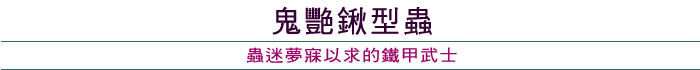 鬼豔鍬形蟲是鍬形蟲中相當具有特色的種類,雄蟲外觀變化頗大,其中的大型個體不但大顎特別細長,體長有的甚至可達九公分,可算是台灣最大型的鍬形蟲。加上牠那黑得發亮的翅鞘,使得這種外觀崢嶸的鐵甲武士,成了初入門的甲蟲迷們夢寐以求的首選逸品。