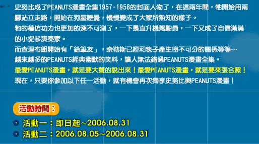 得獎公佈:2006.09.11將在遠流博識網及PEANUTS漫畫全集Blog公佈得獎名單