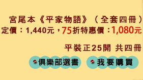 | 日本「女流物語」的代表性人物----宮尾登美子歷經七年研究、書寫所完成的歷史大作----宮尾本《平家物語》,是展現其綜合文化研究、歷史心得及小說藝術功力的最新代表作!除了忠實呈現平安晚期兩大武士集團源氏和平氏興衰的歷史外,卻又以其獨特細膩的女性視角,一反過去史家對平家大肆撻伐的慣例,強調了平清盛維持家族興盛的心路歷程及苦心經營,並為身處亂世、命運由人的女性發聲,訴說了當時各階層女性的無奈與曲折心境。