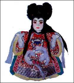 | An eight-inch Chuanchou puppet. Most original puppets are now in museums or private collections and it is a rare opportunity to see them on stage. |