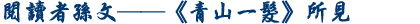 正是這樣求學若渴的心態,讓孫文手不釋卷。《青山一髮》描寫孫文在香港常向老師康德黎借書,聽說康德黎要回英國,孫文若有所失。所失的不是見不到老師,而是借不到書了。