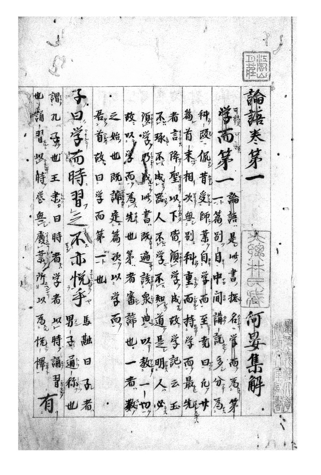 子❶曰:「學而時習之,不亦說❷乎?有朋自遠方來,不亦樂乎?人不知而不慍❸,不亦君子❹乎?」