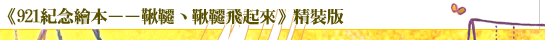 數年來,社會的各個角落仍有人持續地投入各項重建工作,這些歷程或將成為歷史的回顧,但也印證了台灣人無比堅強的生命力。因此,行政院九二一震災重建委員會與遠流出版公司,特別規劃《921紀念繪本--鞦韆、鞦韆飛起來》精裝版雙封面的繪本,以國小新生阿妹歷經:上學適應、地震災變、克難教室及重建校園的悲喜故事,描繪出災區人們的心情與寫照。「天,總是會光」,期待《921紀念繪本--鞦韆、鞦韆飛起來》的出版,能讓你、我以及台灣,在遭遇各項逆境的時刻,永不放棄希望與光亮的到來,就像阿妹的鞦韆,重新又在新學校裡飛揚起來! |