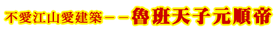 元末代皇帝元順帝妥懽帖睦爾,政治昏庸,不諳權術,但卻是一位優秀的建築師、設計師、發明家。他精通木工設計、製作,通曉機械,極富智慧和創造力,因此京城人稱他為魯班天子。