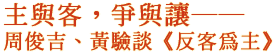 一個前途黯淡的人質,採用了謀士的錦囊妙計,掙脫出絕境,當上了皇帝。這便是宋高宗「半壁江山一著棋」的傳奇故事,這一計改寫了歷史,延續了宋朝的國祚。趙構以「反客為主」之計,得來不太費工夫的帝位,坐起來卻有如千斤壓頂。放眼望去,皇族宗室、朝野上下,都蠢蠢欲動,都在玩「反客為主」的遊戲,威脅他的帝座,他因而長期地陷身在「反客為主」攻防戰中……。