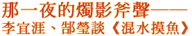 李宜涯(青年日報副刊主編以下簡稱李):歷史上許多政爭、政變、奪權事件,都是從「繼承人未定」這個問題醞釀、發酵出來的,晉王趙光義竊奪皇位所掀起的一場政治風暴,也是肇因於此。