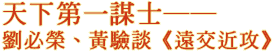 劉必榮(東吳大學政治系教授以下簡稱劉):范雎的「遠交近攻」戰略,是從「合縱連橫」脫胎換骨而來的。自從蘇秦、張儀提倡「合縱連橫」五、六十年來,這個策略已玩到技窮,成為一種僵局。