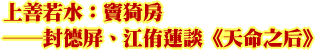 江侑蓮(前實學社編輯,以下簡稱江):竇猗房是一形象鮮明的女性,除額頭眉眼四周會發出的若有似無的紫光及明亮外貌外,她的聰慧更令人印象深刻。如在面對鄉父老嚴厲的質詢時,甚至是薄夫人的「進隱」──一種猜謎遊戲,小小年紀的她都能深思熟慮、亳無差池的應對。