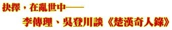 (本次對談內容取自《楚漢奇人錄》,實學社出版,遠流發行)