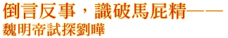 關於「倒言反事」,《韓非子》雖然也舉了幾個例子,但失諸簡略。最貼切的案例,莫過於三國時代魏明帝曹叡試探劉曄一事。