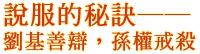 劉基的說服法太有威力了:首先,找出要遊說的對象(如甲)所崇仰的人(如A),以及厭惡的人(如B)。運用甲=A≠B的公式,把遊說的對象甲,定位成和A一樣,並用對比法,讓對象甲知道,如果不聽從遊說,就會變得跟B一樣。