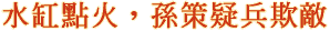 像孫策這樣以疑兵欺敵的戰術很多,道具也很多,最有名的是「灶」。運用巧妙,存乎一心,虞詡增灶欺敵,孫臏卻以減灶,讓敵人在猜測對手兵力時誤判情勢。而困守不出的廉范以火把為工具,有異曲同工之妙的還有廉范的三頭火把策略。