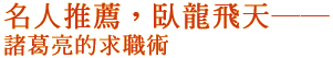 不忮不求,不主動,不應徵,唯一的辦法便是化主動為被動。諸葛亮採用「名人推薦法」。