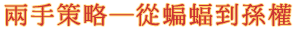 兩手策略不好使,操縱手法要高明,合縱手腕要高超,要善用恐怖平衡,活用敵我矛盾,才不會從兩邊都要,轉為兩頭落空,裡外不是人。