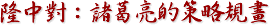諸葛亮的<隆中對>,是歷史上少見的策略規畫,以宏觀的視野,擬定前瞻的戰略,迄今都是以史為鏡的企業人士研究策略的借鏡。