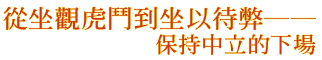 「鷸蚌相爭,漁翁得利」是一項好策略,但那是指漁翁的實力遠比鷸、蚌強,而且躲在暗處,伺機而動。如果兩強相爭時,較弱的一方,保持中立,坐觀虎鬥,是不是好的策略?