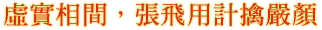 現在一想到張飛,無非是眼如銅鈴,魯莽老粗的形象,這是羅貫中筆下的張飛,卻也成為張飛的定裝照。其實張飛是富家子弟,讀過書不說,還寫了一手好字,不是屠宰業者。但說也奇怪,羅貫中把張飛描繪成粗枝大葉的樣子,卻又虛構了幾段故事,讓正史裡似乎沒用過什麼計謀的張飛,過足了用謀運策的癮。