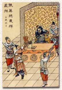 張飛破城,俘獲劉璋的部將嚴顏時,呵責嚴顏說:「我大軍攻來,你為什麼不投降,還斗敢抗拒?」